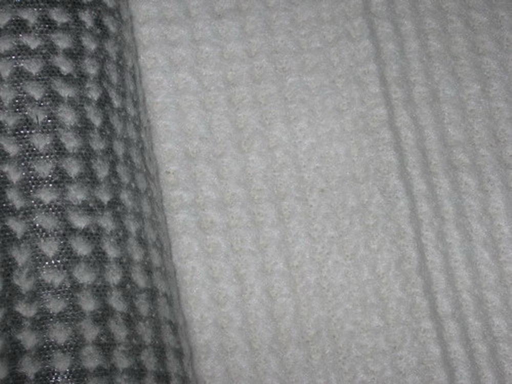 鈉基膨潤土防水毯是生態(tài)環(huán)保型防滲材料,是以鈉基膨潤土為主要原料,采用針刺法、針刺覆膜法或膠粘法加工制成的毯狀防水材料。鈉基膨潤土又稱之為鈉基蒙脫石,其防滲機理主要是利用夾封在材料中間的膨潤土吸水后,在上下兩層土工織物及回填保護層的壓力下,使其局限在一定的空間內膨脹,從而形成緊密的膠凝體,以此達到止水防滲的作用。它遇水可以膨脹24倍以上并經(jīng)過針刺工藝形成非常穩(wěn)定的膠狀防水層,具有濾失量低和蠢性高的特性。